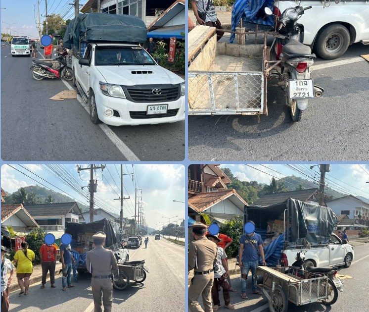 วันที่ 11 มี.ค. 2568 เวลา 14.50 น. ร.ต.อ.ชิติพัฒ วุฒิพุฒิ พงส.ฯ ได้รับแจ้งเหตุ ว.40 รถจักรยานยนต์พ่วงข้างชนท้ายรถกระบะ บริเวณบนถนนหลวงแผ่นดิน สาย 1020 ม.4 ต.บุญเรือง อ.เชียงของ จว.เชียงราย