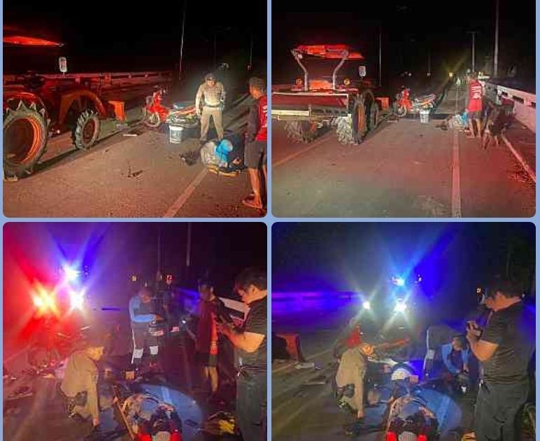 วันนี้ 10 ต.ค. 2567 เวลา 23.00 น. ว่าที่ พ.ต.ท.ประสพโชค ตระกูลอินทร์ ได้รับแจ้งเหตุ ว.40 รถแทรกเตอร์การเกษตรเฉี่ยวชนกับรถจักรยานยนต์ บริเวณบนสะพาน ม.14 บ้านเกี๋ยง ต.ห้วยซ้อ อ.เชียงของ จว.เชียงราย