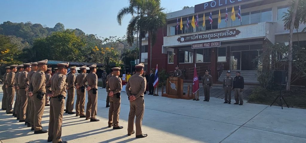 เมื่อวันที่ 23 ม.ค. 2568 เวลา 09.00 น. พ.ต.อ.กุลชาติ ศักดิโยธินธาดา ผกก.สภ.บุญเรือง นำคณะข้าราชการตำรวจสภ.บุญเรือง รับการตรวจเยี่ยม จาก พล.ต.ต.มานพ เสนากูล ผบก.ภ.จว.เชียงราย โดย พล.ต.ต.มานพ เสนากูล ผบก.ภ.จว.เชียงราย ได้มอบสิ่งของเพื่อบำรุงขวัญและกำลังใจในการปฏิบัติหน้าที่ของ เจ้าหน้าที่ตำรวจ สภ.บุญเรือง ตรวจเยี่ยมโครงการบ้านนี้มีรักปลูกผักกินเอง และออกตรวจเยี่ยมประชาชนในพื้นที่ ที่ไม่สามารถช่วยเหลือตนเองได้ โดยได้มอบสิ่งของยังชีพจำเป็นในการดำรงชีพเบื้องตน สอบถามความเป็นอยู่ เพื่อเป็นขวัญกำลังใจให้กับประชาชน